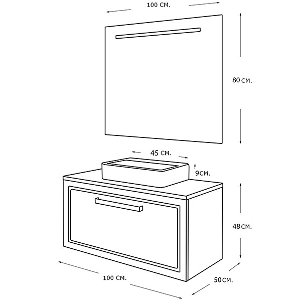 Plan vasque / L 100 / H 1.7 / D 50 cm.