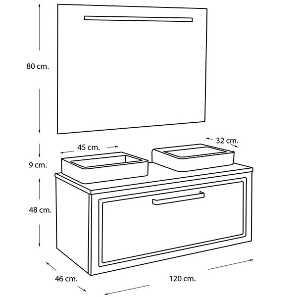 Plan vasque / L 120 / H 1.7 / D 50 cm. / 2 Vaques