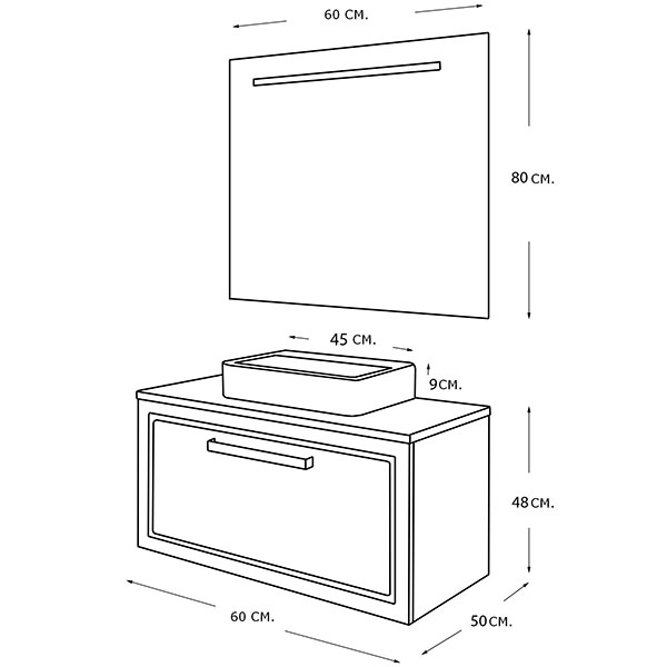 Plan vasque / L 60 / H 1.7 / D 50 cm.