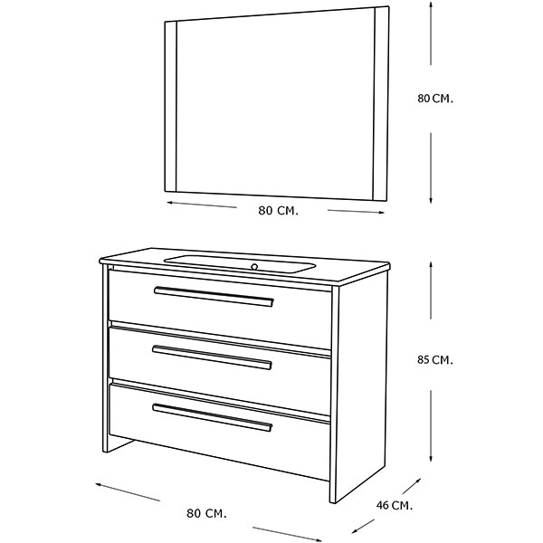 Plan vasque / L 81 / H 1.7 / D 46 cm.