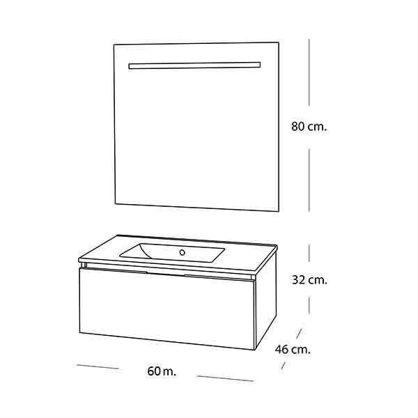 Plan  vasque  / L 60  / H 1.7 / D 46  cm.