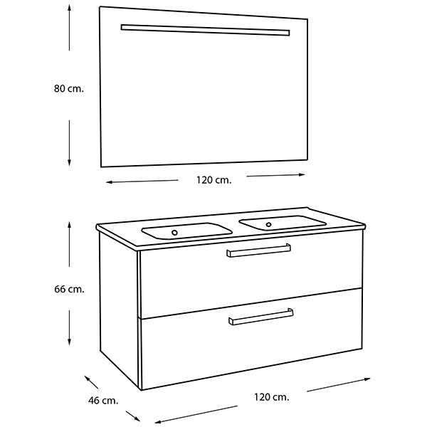 Plan  vasque  / L 120  / H 1.7 / D 46  cm. / 2 Vaques