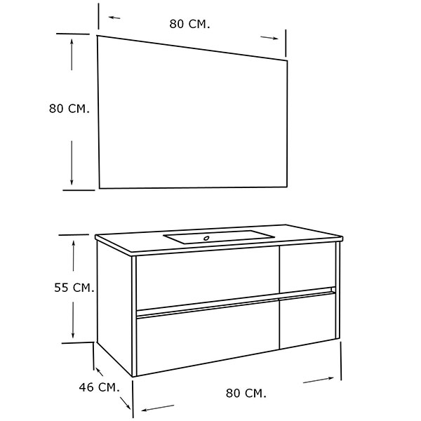 Plan ceramic L 81,5 x P 46 x H 1.6 cm