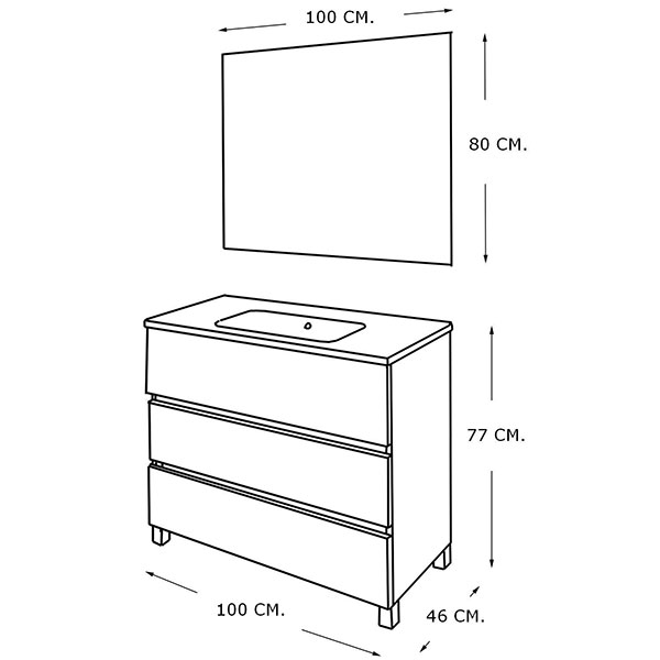 Meuble L100 x H73 x D45 cm.